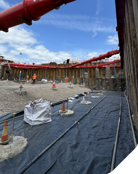 The key challenge was delivering a detailed design for a large-spanning cofferdam that accounted for pile positions while minimising deflections. The scale of the excavation and integration of multiple elements required precise engineering and coordination with other contractors, including JIG Consulting Engineers for the cofferdam & full temporary works integration and Ritcher Associates for the Dewatering design & CAT3 check.