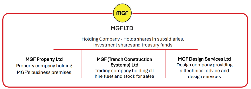 MGF Ltd as the parent holding company has the ultimate responsibility for the corporate governance of the MGF group of companies. The Directors of MGF Ltd have approved this Modern Slavery Statement. Furthermore, two of the Directors of MGF Ltd are also Directors of MGF Property Ltd, MGF (Trench Construction Systems) Ltd and MGF Design Services Ltd. As such there is a clear line of accountability and responsibility from MGF Ltd to subsidiary companies. MGF (Trench Construction Systems) Ltd perform all HR, SHEQ and Procurement functions for MGF group and, accordingly, are charged with effecting a robust approach to